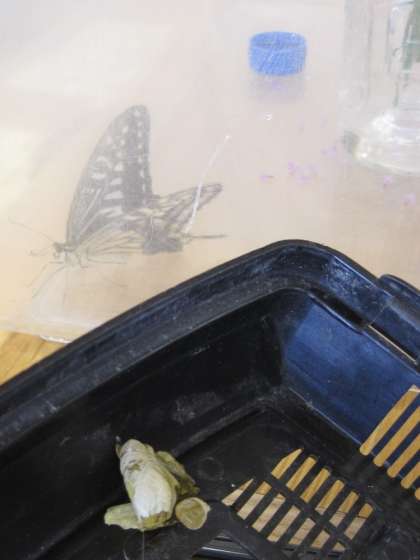 アゲハチョウの羽化 公開日 2020/09/28 更新日 2020/09/28 児童の活動 今日、アゲハチョウのサナギが羽化して、きれいなチョウに生まれ変わっていました。 図書館に来た子供達は歓声をあげていました。20分休みに図書委員の子がアゲハチョウを観察ケースから出して逃がしてあげました。アゲハチョウは子供達に見守られながら元気に飛んで行きました。