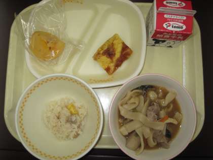 学校給食ぐんまの日 公開日 2020/10/23 更新日 2020/10/23 お知らせ 10月23日(金)は「学校給食ぐんまの日」です。 メニューは、『ひとくち栗おこわ、牛乳、手作りたまごやき、おっきりこみ、かき』です。 住んでいる地域や県内産の農産物をたくさん使った給食が提供されます。群馬県の自然豊かな恵みに気づきみなさんでおいしくいただきます。(給食通信より)