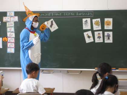 ハロウィンの言葉を使って、友達と英語で話をしました。