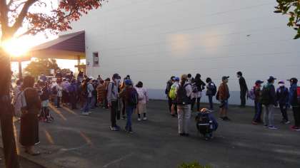 10月30日、6年生は日帰りの修学旅行に出かけています。 朝日と共に集合、7時に出発しました。