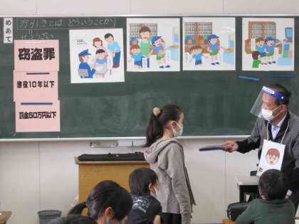 警察のスクールサポートの方を講師に、講話やロールプレイをとおして、「万引きは犯罪であり、絶対にいけないこと」を学びました。