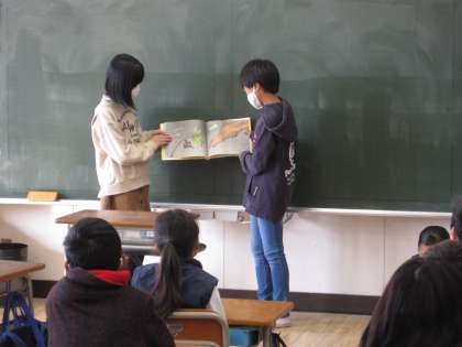6年生が自分たちで絵本を選び、総合学習の時間を使って練習してきました。6年生は緊張した様子でしたが、上手に読み聞かせができました。下級生も真剣に聴いていました。「どのようにしたら自分たちの思いが実現できるだろうか」と考えて行動した6年生がたくましく見えました。