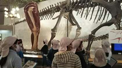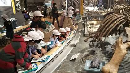 自然史博物館ヘ到着しました。スポット解説、ミュージアムオリエンテーリング等学習しています。