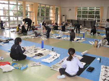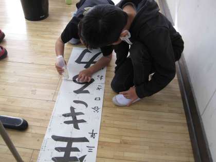 3年生 書き初め練習 公開日 2020/12/16 更新日 2020/12/16 児童の活動 3年生は毛筆による初めての書き初めを行います。 自分で貼り合わせたお手本を使い、食堂棟で書き初め練習をしました。 3年