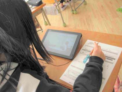 「ニュース番組はどのように作られるか」という単元で、自分のペースに合わせて、関心がある項目について調べていました。