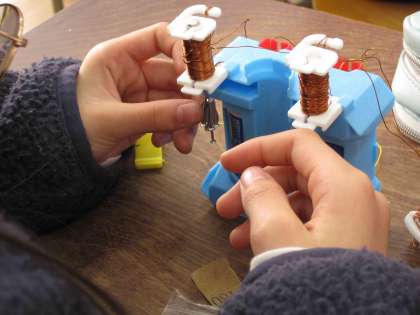 5年生では、理科で電磁石の学習をしています。 コイルの巻き数を変えて電磁石の強さを比べる実験をしています。