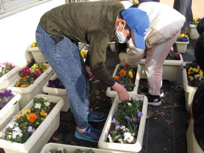 写真は緑化委員会・美化委員会の子どもたちが仕事をしている様子です。