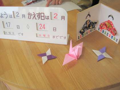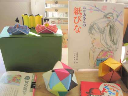 図書室に「和紙のひな人形」が飾られるようになりました。 もうすぐ、ひな祭りの季節です。