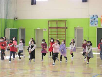 その成果として、体育学習発表会で取り組んだ「ぐれんげ」と「ニジュー」のメイク・ユー・ハッピーを全集中で披露しました。