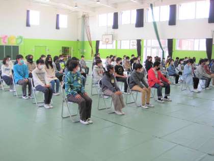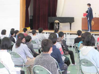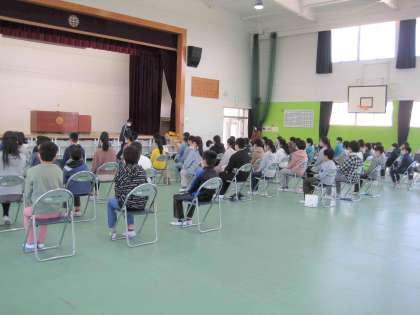 6年生は緊張した面持ちで、卒業式に臨む心構えや証書授与の方法等について話を聞きました。