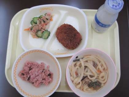 今日(4月8日)の給食は、進級祝いメニュー「お赤飯」でした。