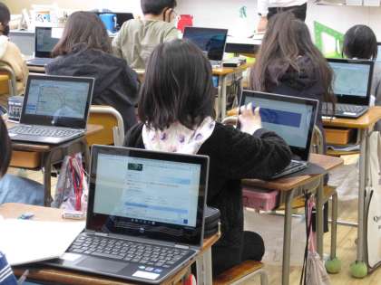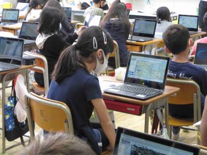 4年生は、玉村町周辺地域の土地利用の様子をタブレットを使って調べています。