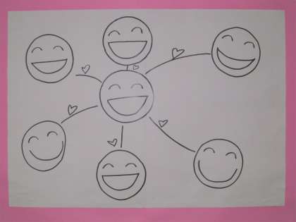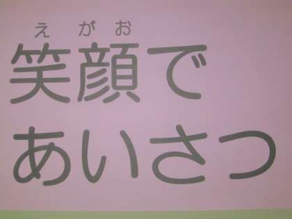 「なかよく」なるために大事なことは「笑顔であいさつ」。