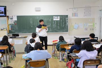 担任団がローテーションをすることで、一つの題材を3クラスで教えることができる利点があります。