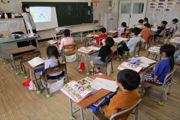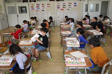 令和5年5月1日(月) 1年3組の生活科の授業の様子です。 アサガオの種の観察です。