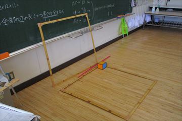 1mのものさしを組み立てて、1平方メートル、1立方メートルをつくって、実際の大きさを説明しています。