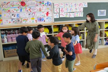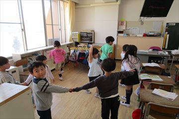 「ひらいた ひらいた・・・・」の音楽に合わせて踊っています。