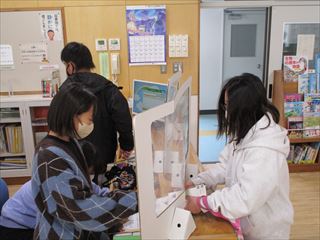 図書委員会の仕事 公開日 2023/12/05 更新日 2023/12/05 児童の活動 令和5年12月5日(火) 20分休みには、図書委員が本の貸し出しをしてくれます。 ごくろうさま。 ありがとうございます。 6年
