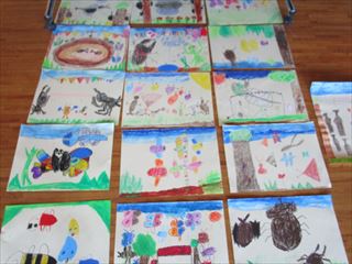 1年3組の絵 公開日 2023/12/07 更新日 2023/12/07 児童の活動 令和5年12月7日(木) 会議室に1年3組の児童の書いた絵がおかれていました。 上手に描けています。 小学生では絵の具を使います。 上手にぬれるようにがんばって! 1年