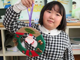 なかよし4組の教室に行くと、クリスマスの飾りがつくられていました。