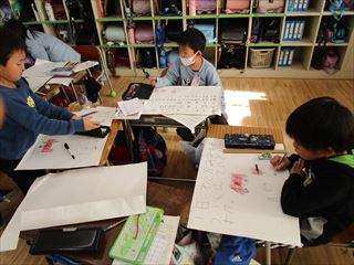 探検したグループで、クイズを作っています。