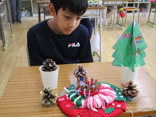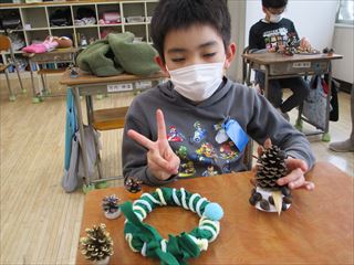 なかよし4組では、自分の作った作品を友達に紹介する学習をしていました。
