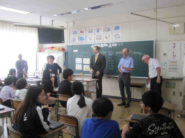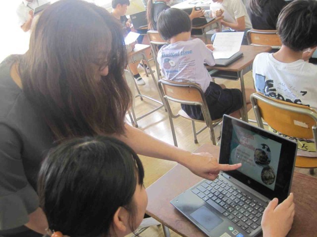 6年生外国語の研究授業です。本時のねらいは、「ポスターを使って国を紹介する活動を通して、国の特徴や魅力を英語で分かりやすく伝えることができる。」です。
