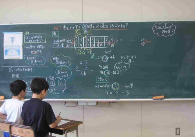 6年生の算数を参観しました。問題と表と式を比べながら解決するって大切なことですね。いつもの並びでない授業スタイルもいいですね。誤解のないように伝えますが、席が黒板の前にある二人は、本人の希望で黒板に近づいています。集中していますよね。