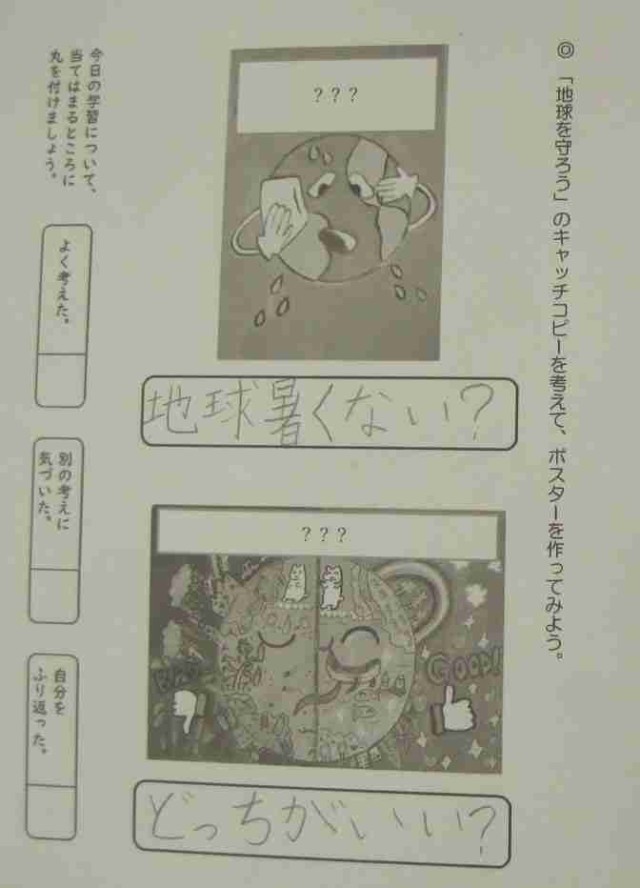 6年生の道徳を参観しました。地球の環境問題、とても難しいけれど、逃げていけないことだと思います。地球規模で考えて、自分でできることをコツコツ続けることが大切ですね。みなさんは、何から始めますか。今日の道徳では、どのようなきもちになったのでしょうか。