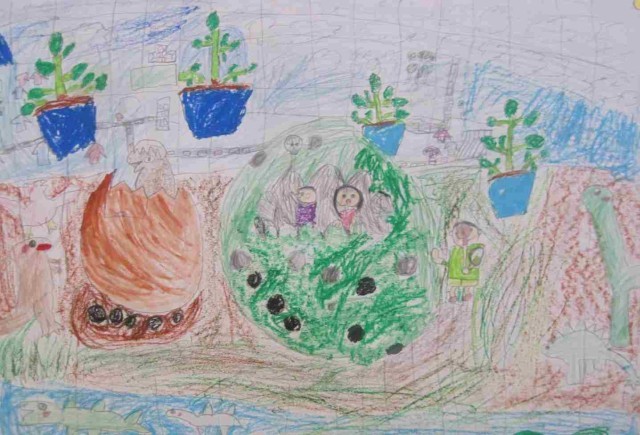 2年生の図工作品です。力強く、かけていますね。