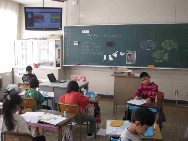 2年生の図工を参観しました。下絵にあわせて、紙を貼っていました。下絵があまりにも上手なので、びっくりしました。きっと、車が好きなんでしょうね。