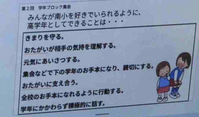②第2回ブロック集会 南小が好きでいられるように,高学年としてできること