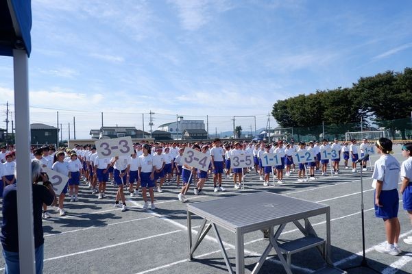 雨のため1日延期した体育祭。今日は快晴の青空の下、熱戦が続いています。午前はトラック競技やフィールド競技に分かれて個人種目でクラス対抗戦を行います。競技も応援もみんな本気です。青春が輝いています。午後は、団体種目となります。