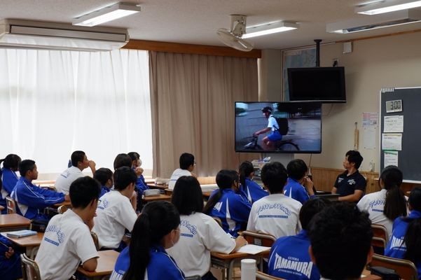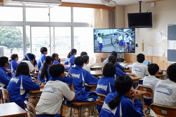 自転車の乗り方については、地域の方からも連絡をもらうことがあります。そんな中、生活委員会が自転車の乗り方を改善したいということで、啓発動画を自分たちで作りました。並列走行の危険やヘルメットの必要性などを訴えてました。少しでも意識できるようになるといいですね。