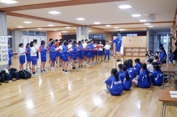 放課後になるといろいろな所から合唱の声が聞こえてきます。2クラスで歌を発表し合って、感想を言い合う活動も生徒が自主的に行っています。よいと思ったところ、課題だと思ったことを的確に言い合っています。人前で発表する度胸もつきます。