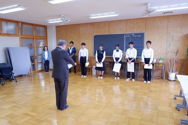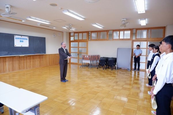 玉村町の教育委員会表彰が教育長さんが来校し行われました。運動部では、県中体連の大会を勝ち抜き、関東大会レベルの大会に出場した生徒が対象となるようです。受賞した3年生は高校でも競技を続けたいと力強く答えていました。