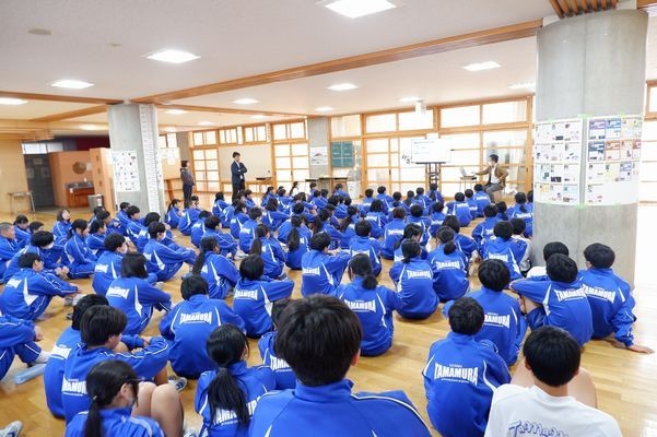 合唱祭も終わり、各学年では総合的な学習の時間で自分の生き方を考えていく学習を行っていきます。1年生がその学習のガイダンスをしていました。中学校では最終的に自分の生き方や将来を考えて進路選択をしなくてはなりません。3年生は今、正に進路選択の時期を迎えています。そのためにも1年生のうちから自分の長所や適性、働くことや職業について考えていくことが大切です。しっかり考え、学んでいってください。
