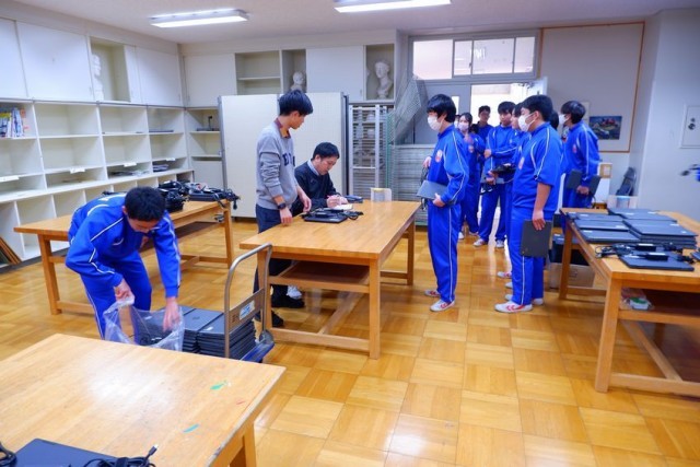 3年生が古いタブレットPCと新しいタブレットPCを交換しています。3年生は少しの期間しか使いませんが、有効に、ていねいに使ってください。出願もすべてWeb出願になります。もう、あって当たり前のアイテムになっています。