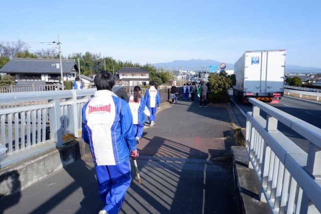 玉村中の隣にある福祉作業所のばらの方は定期的に地域の清掃をしているそうです。のばらとは、これまでも福祉委員がダンボールやペットボトルキャップを届けたり、避難訓練を一緒に行ったりしてきました。今日はいずみ学級の生徒が地域の清掃をのばらの方と一緒に行いました。渋滞しやすい玉村大橋の交差点付近にはタバコやペットボトルのポイ捨てが多くありました。ゴミを一生懸命拾っていたので、自分たちはこれからも捨てたりはしないと思います。