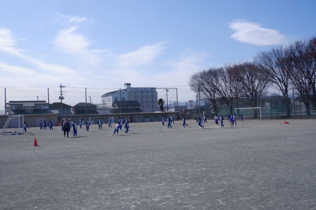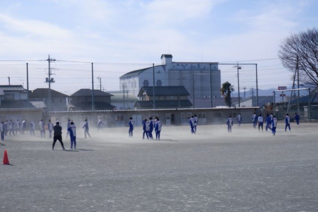 今季最強寒波がくるそうです。昨日までの穏やかな日とは違い、今日は時折北風が強く吹いています。3年生が体育の授業でサッカーをやっています。強風によって砂が巻き上がることもありますが、その中でも中断することなくボールを追いかけています。受験まっただ中の3年生にとっては、体育の授業は身体を動かす貴重な機会になっています。