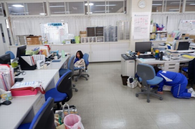 職員室と校長室のそうじは2年生が行っています。短い時間ですがテキパキと動いてきれいにしてくれます。机の下やロッカーの上なども丁寧にぞうきんで拭いてくれます。他の場所も同じようにそうじを一生懸命していると思います。いつまでも校舎がきれいなのは、玉村中の生徒のおかげです。