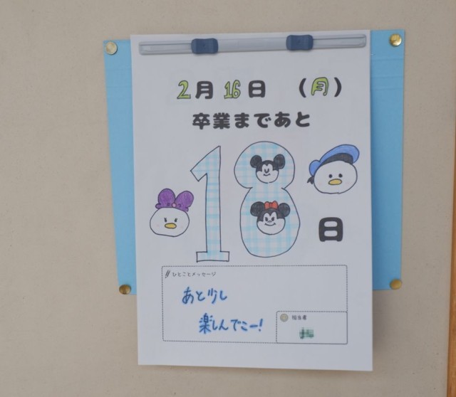 2月も後半となりました。廊下や教室にカウントダウンの日めくりカレンダーがあります。3年生が卒業まで実際に学校に来る日はあと18日のようです。今週末には公立高校の入試もあります。緊張感が高まってきていると思いますが、こういう時こそ学校でも時間が大切です。一日一日をしっかり、落ち着いて過ごしましょう。
