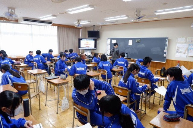 3年生の出前授業4弾はMata社の「みんなのデジタル教室」です。テーマは「フェイクニュースの見分け方」です。各教室をオンラインでつないで行いました。具体例を示しながら、どんなフェイクニュースが広がりやすいか、どんな影響が出るか、どんことに注意したらよいかなど、考えたことをチャットで共有しながら進めてくれました。これからの社会ではとても必要な力です。