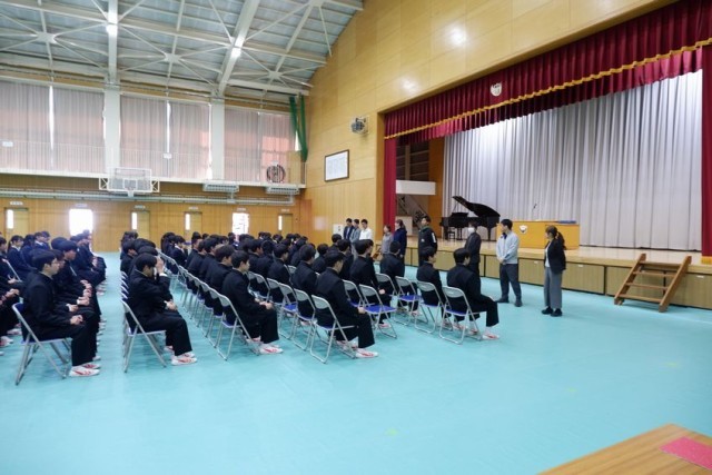 卒業式に向けて全校リハーサルを行いました。1、2年生にとっては卒業式の練習はこの1回だけです。3年生の堂々とした姿を見て何を感じたでしょうか?明日の卒業式では3年生への思いを一人一人が表してほしいと思います。