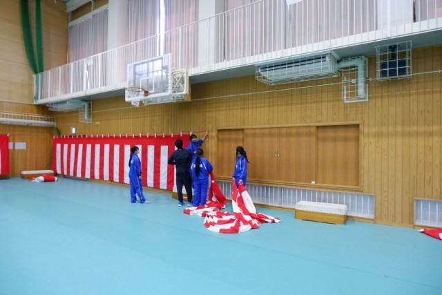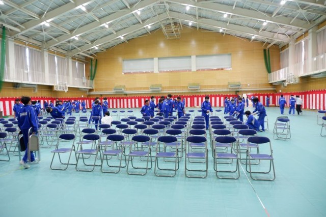 午後は1、2年生が式場などの準備をしてくれました。自分で仕事をみつけて進んで取り組んでいる生徒もたくさんいました。準備は整いました。後は明日主役の3年生を待つだけです。きっと素晴らしい卒業式になると思います。