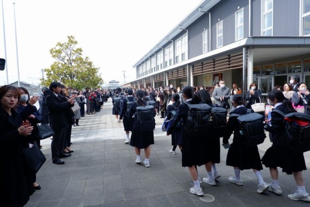 最後のクラスでの活動を終えて、卒業生が出てきました。先生や保護者の方に花道を作ってもらい見送ります。卒業式ではたくさんの生徒が涙を流していましたが、ここではみんな笑顔です。晴れやかな笑顔です。しばらく、生徒同士で写真を取り合ったり、先生と写真を撮ったりしていました。さあ、新たな出発です。