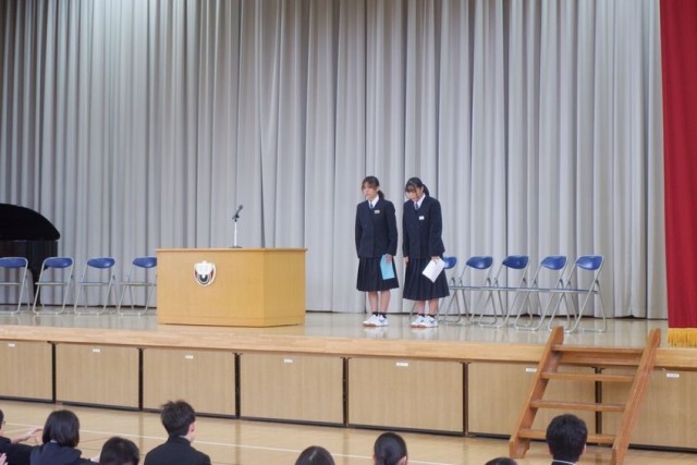 今日が令和7年度最後の登校日です。修了式では、生徒代表の2名から、今年度がんばったこと成長できたこと、進級してがんばりたいことなど、力強い言葉がありました。春休みは学年の節目なので、しっかりふり返りをして、新しい学年の準備期間としてください。
