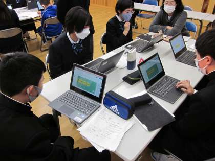 12/9 学校保健委員会 公開日 2021/12/09 更新日 2021/12/09 学校・学年行事 学校保健委員会を行いました。保健委員と生徒会本部役員の代表が参加しました。タブレットを使って全校で実施した「生活チェック」の結果から課題を見つけ、タブレットを使って解決策を話し合いました。 1年 2年 3年 PTA