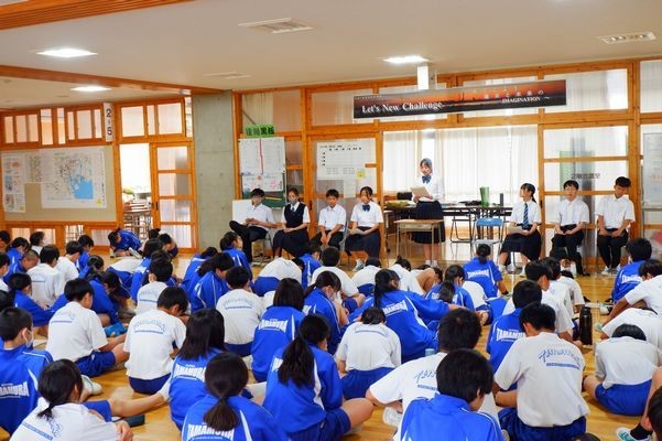 2年生が国語の授業で取り組んでいた「少年の主張」の学年大会を開いていました。クラスの代表8人が学年の生徒の前で堂々と発表していました。自分の体験をもとにしっかりとした主張をしていました。