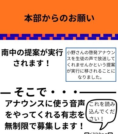 そして昨日の放課後、生徒会本部役員を中心に有志の生徒も加わり、実際に録音を行いました。